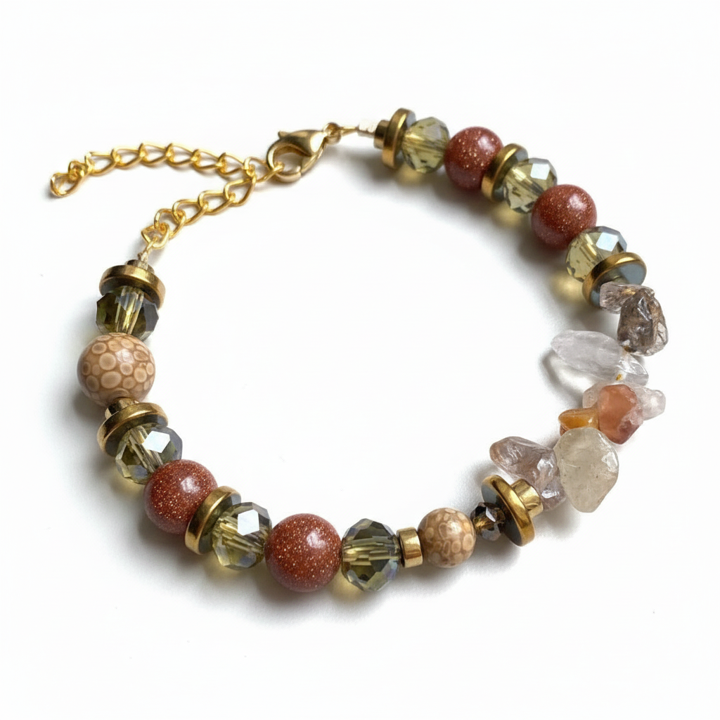 CSTB02 - Gemstone, Sandstone & Maifanite stone bracelet - Natural Tones