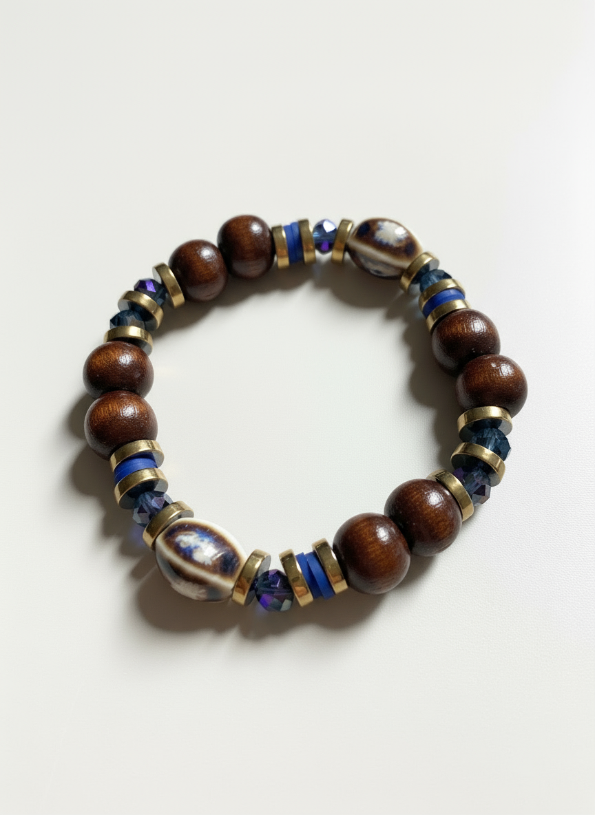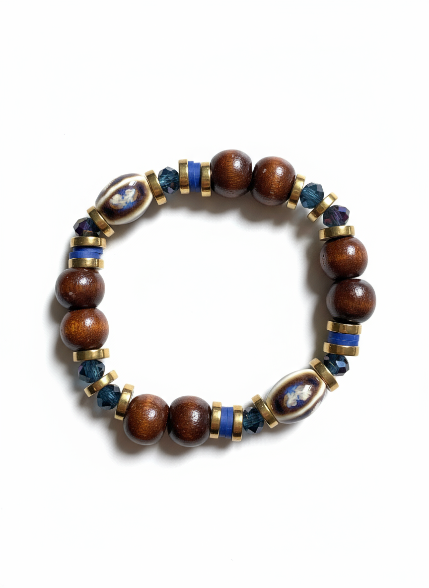 FRTB02 - Porcelain, dyed wood, clay and Hematite elastic bracelet