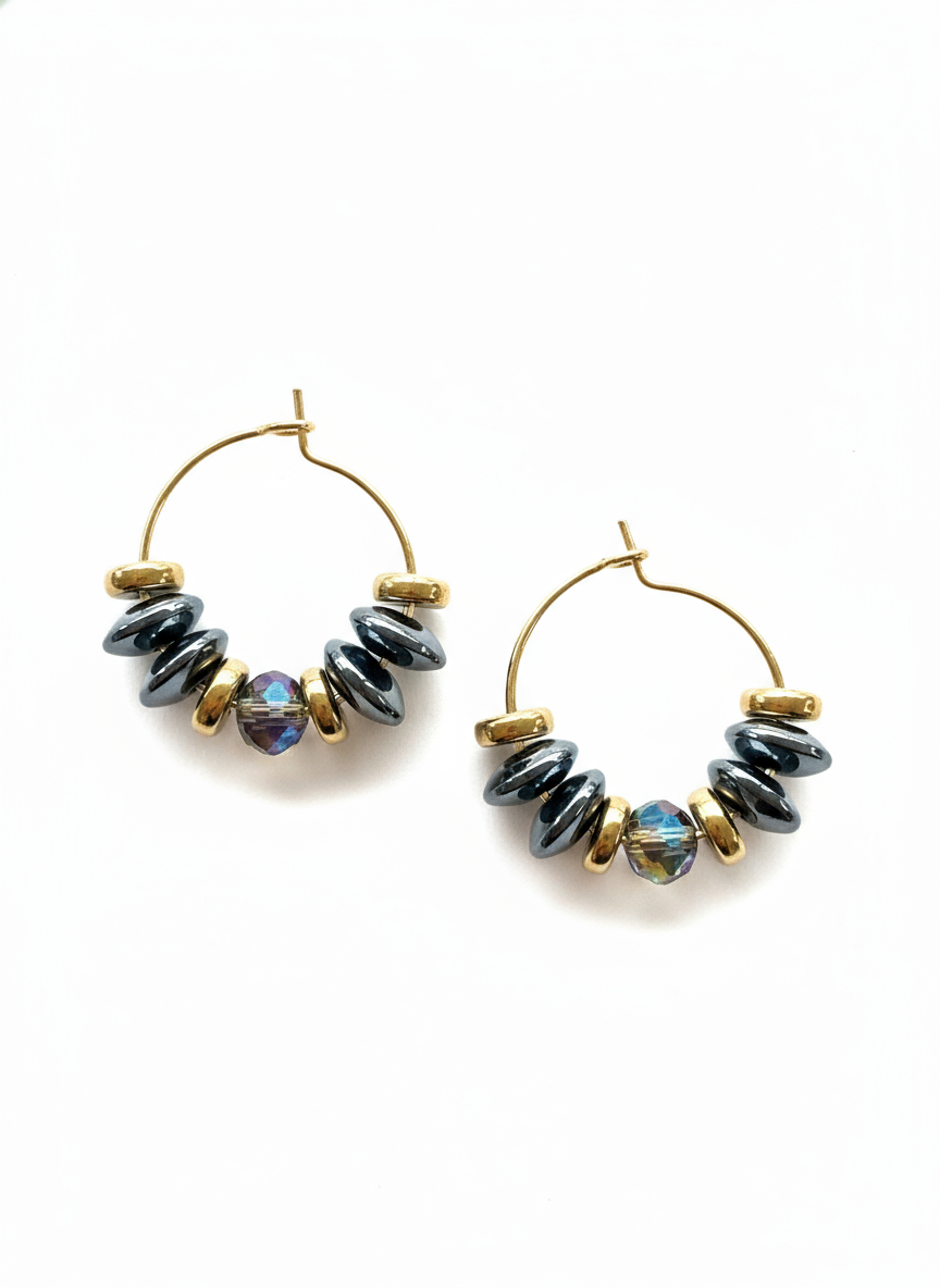 BDLHE15 - Crystal and Hematite Hoop earrings
