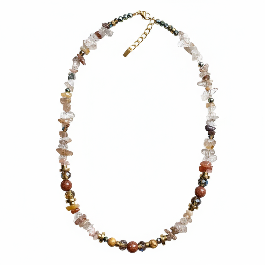 CST04 - Gemstone chip, Maifanite & Sandstone necklace - Natural tones