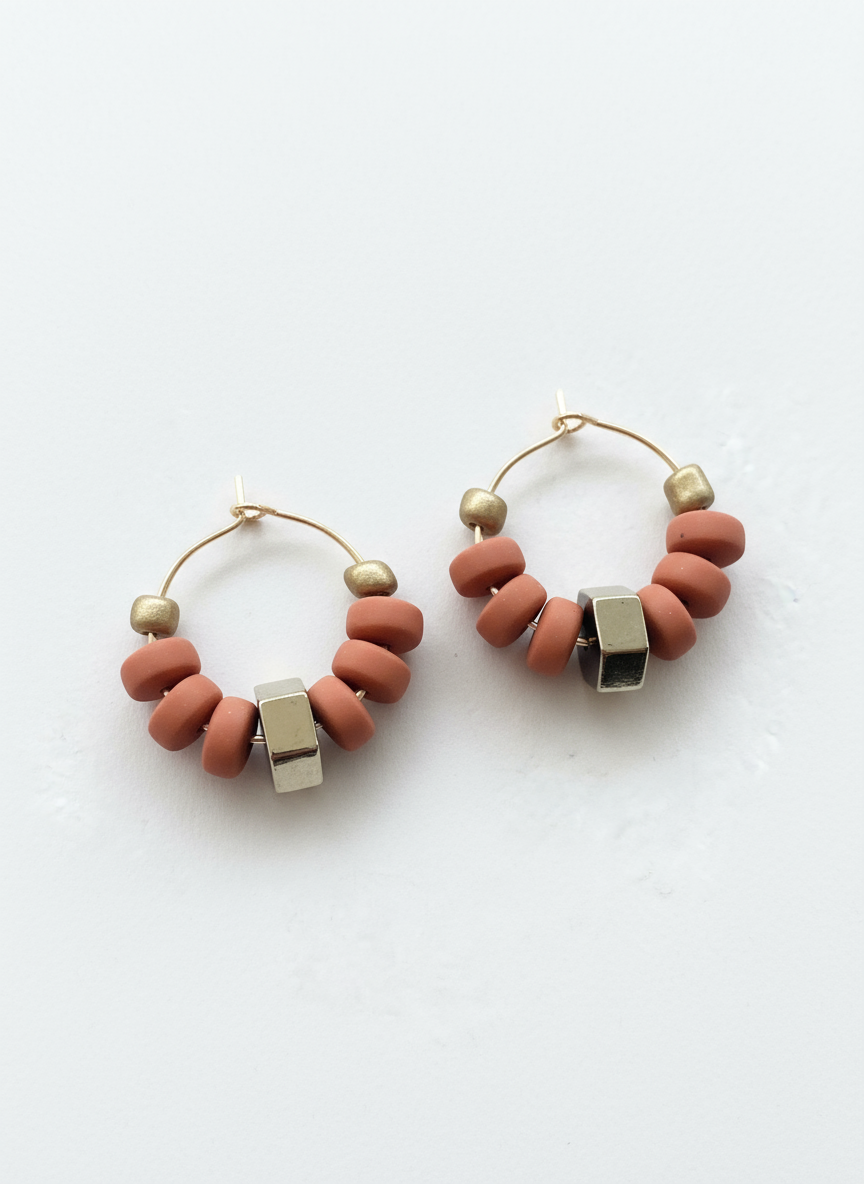 BDLHE21 - Terracotta clay and Hematite hoop earrings